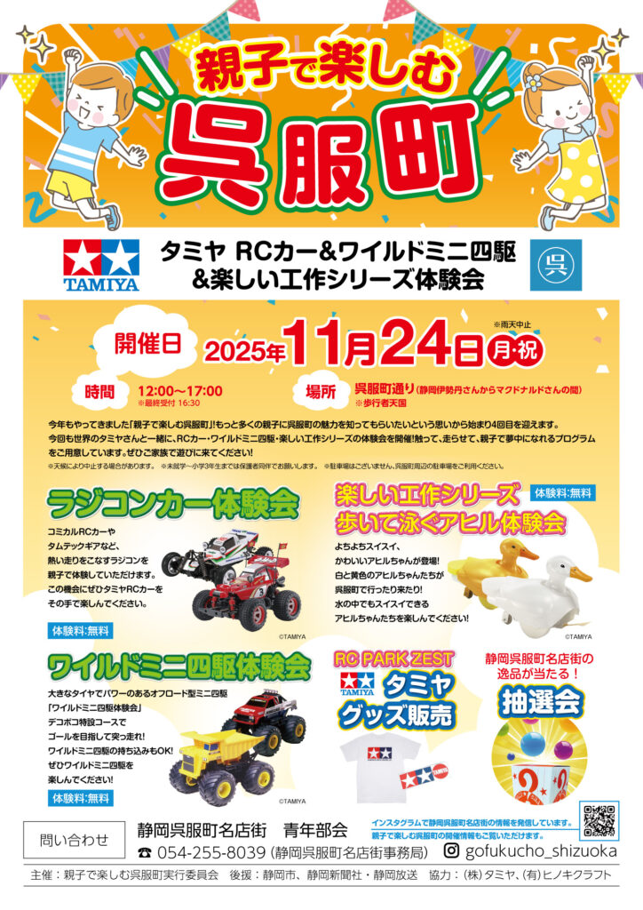 今回も世界のタミヤさんと一緒に、RCカー・ワイルドミニ四駆・楽しい工作シリーズの体験会を開催!触って、走らせて、親子で夢中になれるプログラムをご用意しています。ぜひご家族で遊びに来てください!