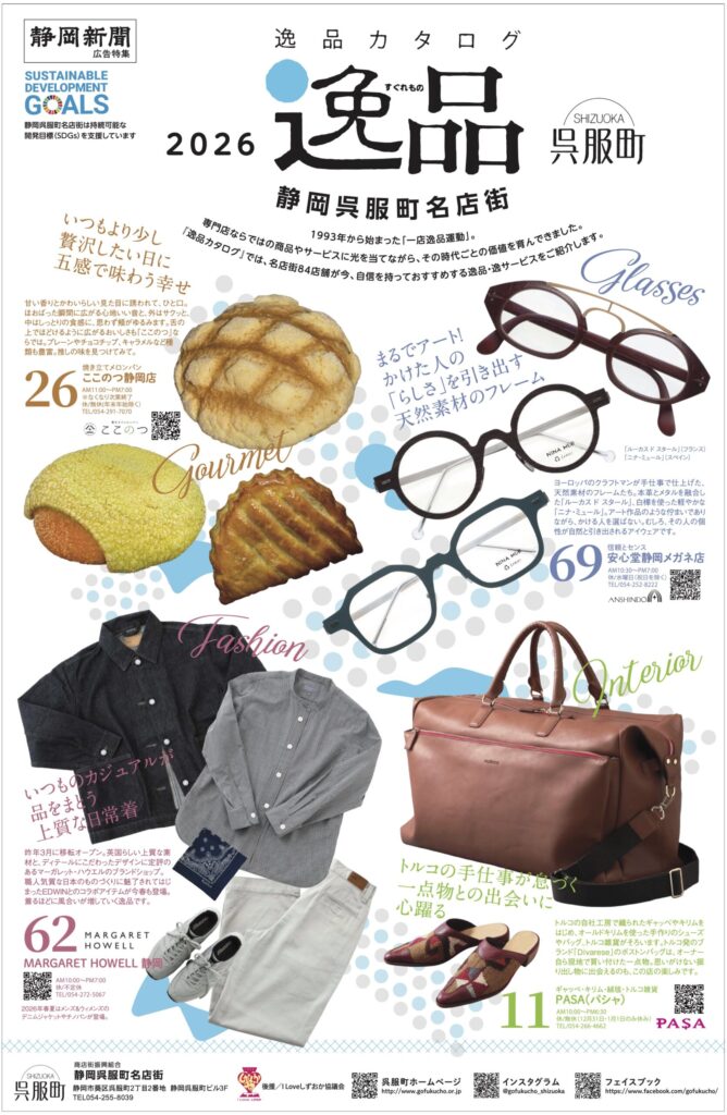 逸品カタログ2026 個店の粋を地域の宝へ1993年に全国に先駆けてスタートした「一店逸品運動」専門店ならではの商品やサービスを再認識し、お客様にしっかりアピールしていこうという活動です。毎年発行の『逸品カタログ』では、各店こだわりの「逸品・逸サービス」を一堂にご紹介しています。 2026 逸品カタログ 逸品カタログ掲載店の情報は「各店情報」メニューからアクセスできます 260319呉服町_逸品2026ダウンロード