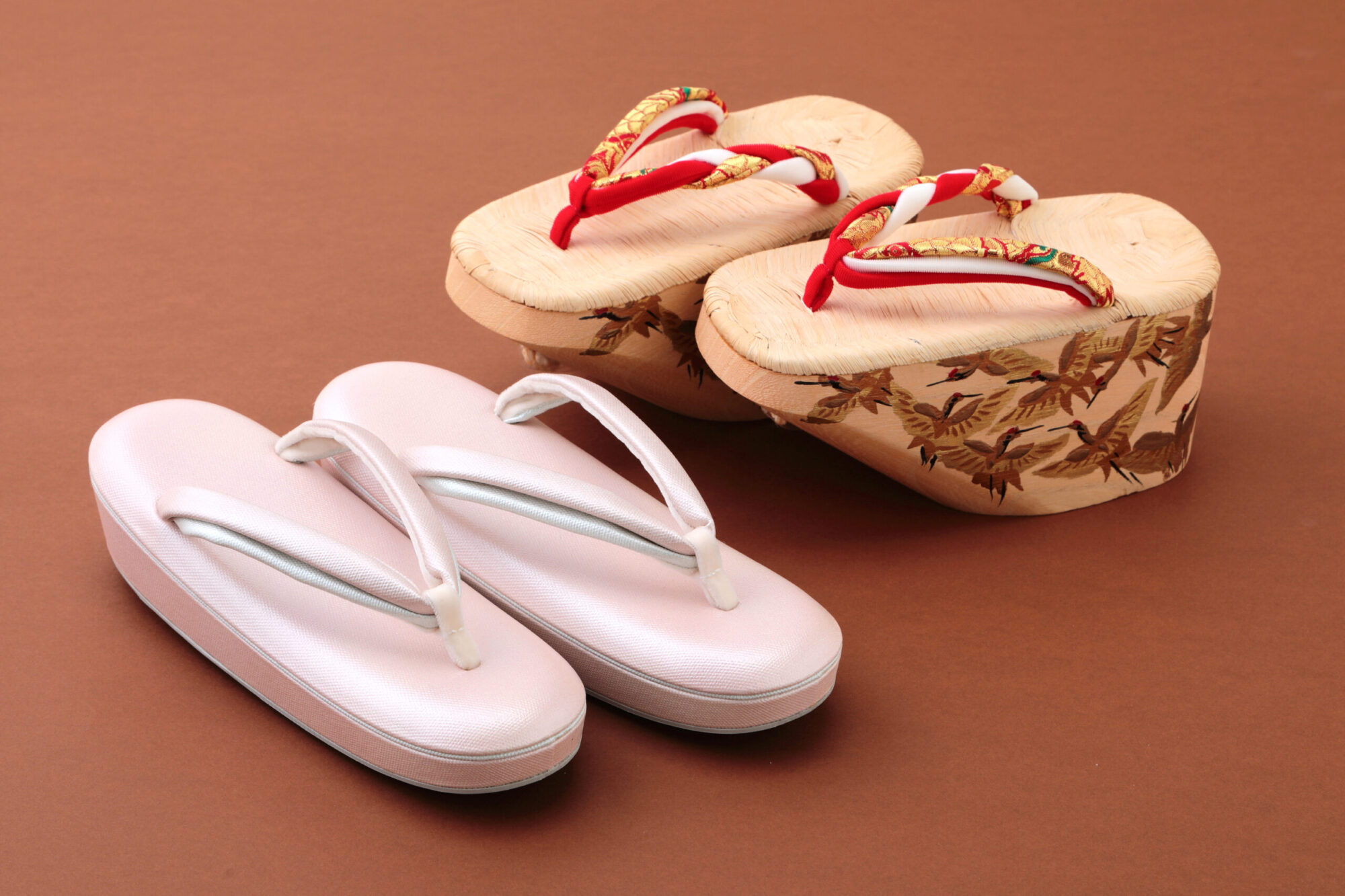 白木に黒塗り蒔絵を施した朱珍よりの七五三竹表付きポックリは、3歳と7歳用です。