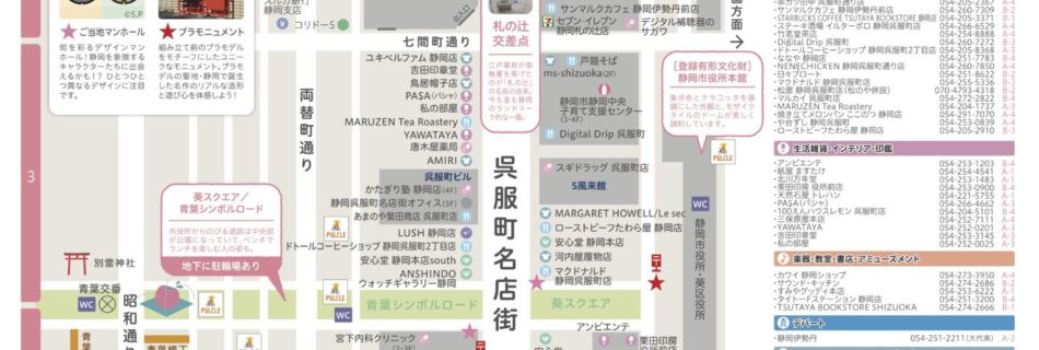 ご好評をいただいております「しずおか呉服町おまち歩きmap」の2026年最新版が完成しました! 呉服町名店街加盟店などで配布しておりますので、是非お手に取ってご覧ください。