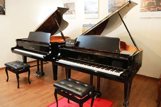 二代目社長の名を冠した窮極のピアノ。熟練クラフトマンが手作りしたピアノは「泉から湧き出る水のような豊かな音の響き」(朝倉店長談)。